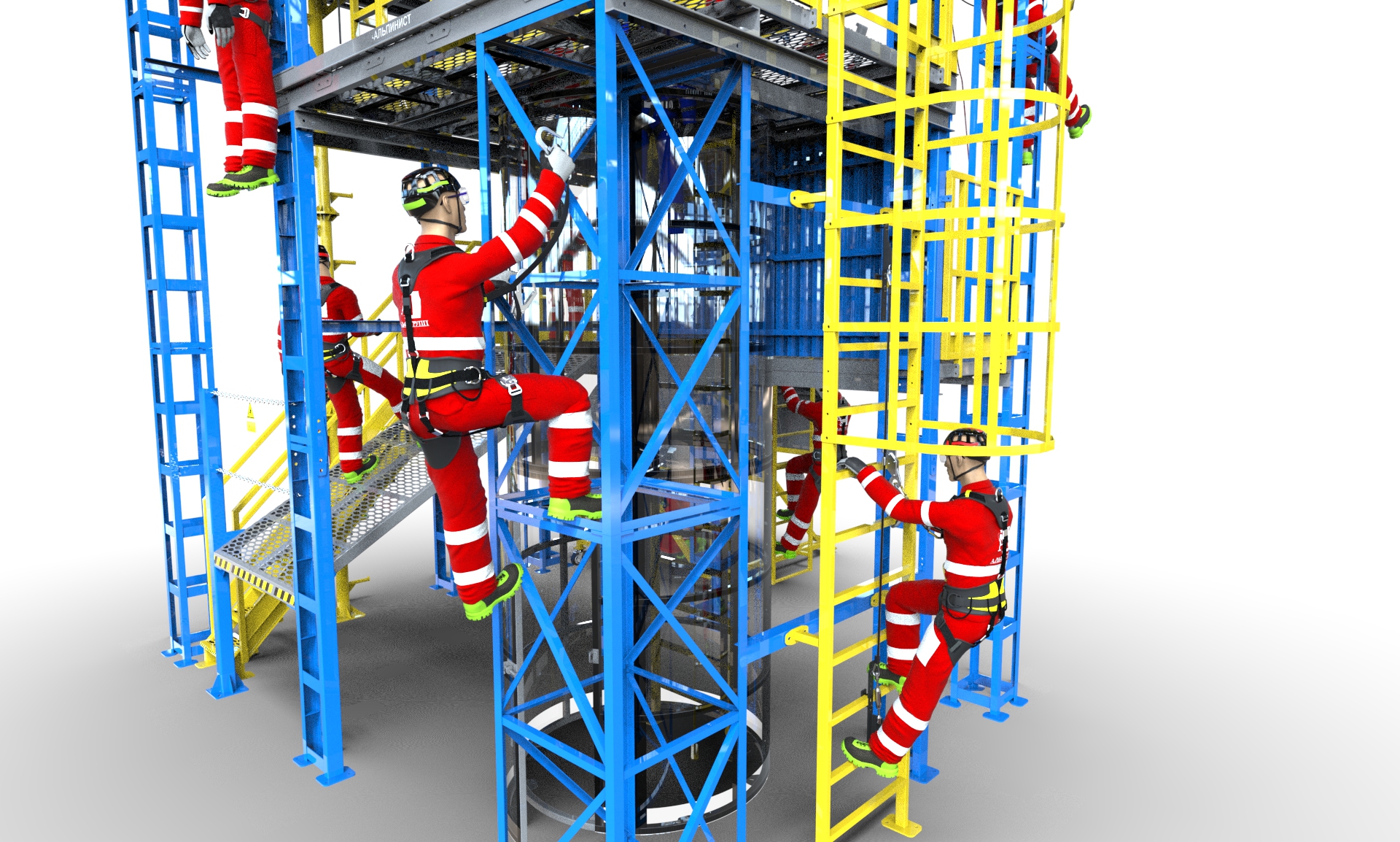Масштабный комплексный тренажер успешно смонтирован и готов к занятиям – первая практическая демонстрация проведена для группы из 40 сотрудников, ответственных за организацию и проведение работ на высоте. Тренажер позволяет моделировать сложные условия проведения работ, а также отрабатывать применение средств индивидуальной защиты, систем крепления и страховки.